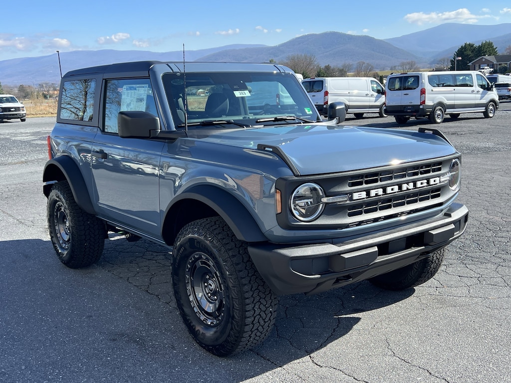 NEW 2025 BRONCO 2-DOOR BASE 4X4. AZURE GRAY WITH GRAY/BLACK CLOTH SEATS. 2.3L, AUTOMATIC. ALSO HAS SASQUATCH PACKAGE!