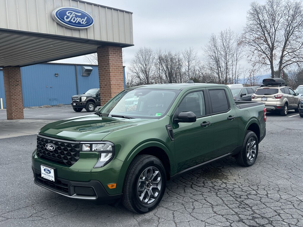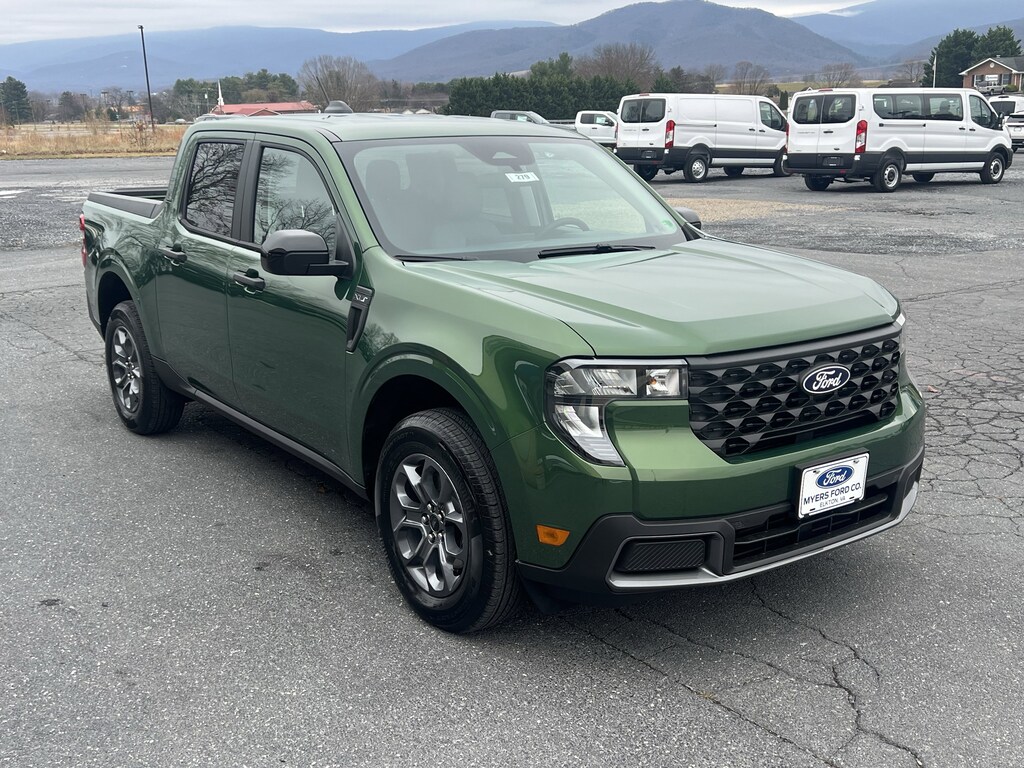 NEW 2025 MAVERICK XLT HYBRID AWD. ERUPTION GREEN WITH NAVY PIER HEATED CLOTH SEATS. OPTIONS INCLUDE XLT LUXURY PACKAGE, 4K TOW PACKAGE, CO-PILOT360, & FLOOR LINERS.