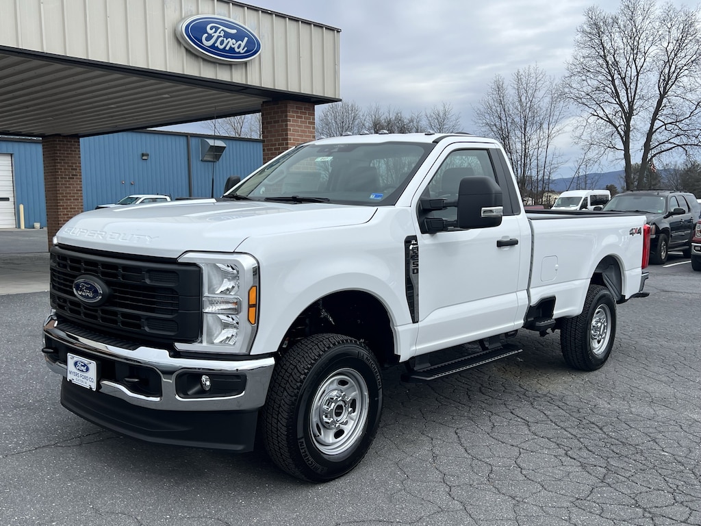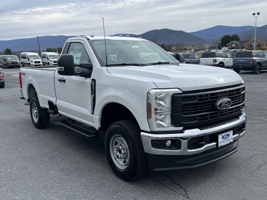 NEW 2026 F250 REGULAR CAB XL 4X4. 6.8L V8 GAS. OXFORD WHITE WITH GRAY VINYL SEATS. OPTIONS INCLUDE ALL TERRAIN TIRES, 3.73 E-LOCKING AXLE, PLATFORM RUNNING BOARDS, SNOW PLOW PREP, TRAILER BRAKE CONTROLLER, ROOF CLEARANCE LIGHTS, UPFITTER SWITCHES, 250 AMP ALTERNATOR, & XL CHROME PACKAGE.